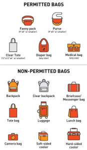 Backpacks, including clear backpacks, are not permitted. Permitted bags include clear totes no larger than 12” x 12” x 6”, small clutch purses no larger than 9” x 5”, medical bags, and manufactured diaper bags that accompany guests with young children. All bags are subject to inspection. Guests are encouraged to arrive early and to allow additional time to enter the ballpark.